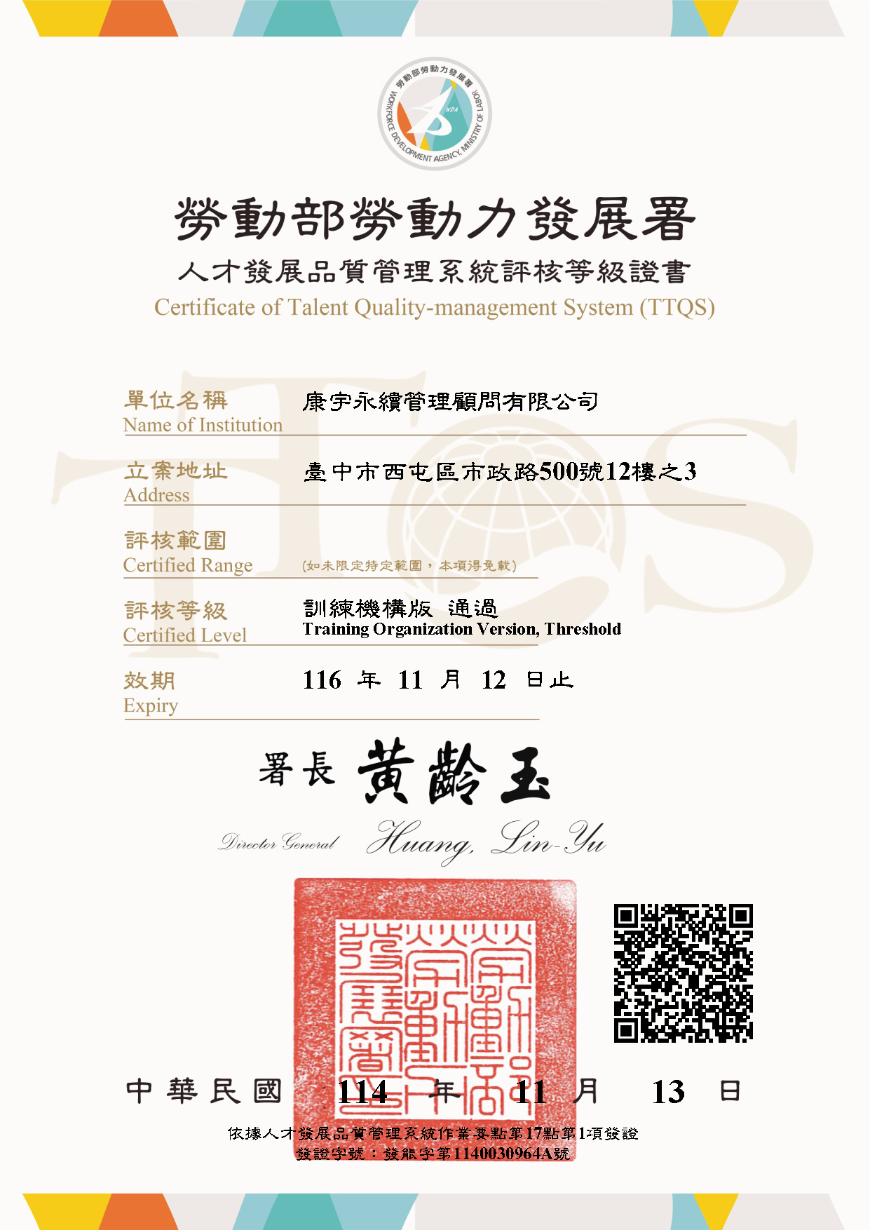賀!!康宇永續通過114年TTQS評核